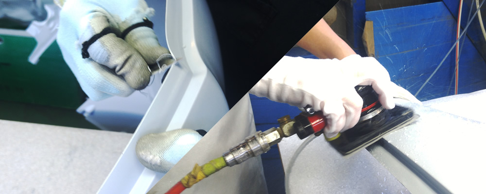 バリ取り・サンディング、組付け・マスキング、運送の三つの工程を自社で行うのでことができます。